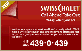 The secret of Swiss Chalet's unique, crispy rotisserie chicken, was inspired by a secret Swiss recipe, discovered by founder Maurice Mauran from Montreal. Today, the rotisserie - a large open-flamed brick oven that slowly roasts the chicken in its own juices, so it's crispy on the outside and tender and juicy on the inside - is still the heart of every Swiss Chalet. |