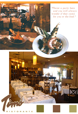 The ambience at timo is upscale european, accompanied with exeptional italian cuisine. Offering the very best selection and impeccable service makes it the number one choice for exquisite italian dining in the york region. celebrating 16 years.